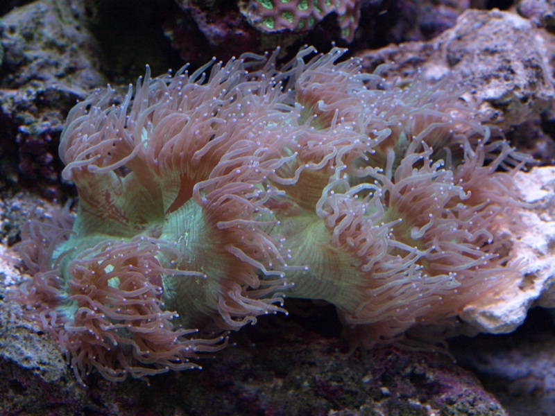 ![]() Family: Caryophylliidae (Stony Corals) Habitat: They are uncommon on reefs, found on slopes in dense colonies Light: Medium Water Flow: Medium Space: 50+ gal. Reef Safe: Yes Care Level: Moderate Temperament: Aggressive Diet: These corals have zooxanthellae which provide much of their nutrition. It is believed they also feed on microzooplankton and directly absorb some nutrients from the water. Natural History: Elegance Corals form wavy and ridged skeletons with a cone-shaped base that allows them to bury into soft bottoms. They extend their long polyps and tentacles by day but nearly completely retract them at night. These corals superficially resemble anemones. Juveniles are generally sessile but become free-living when mature. Husbandry: Elegance Coral were easy to maintain at one time but are now reported to be more difficult to maintain. Many believe this is due to shipping and holding practices in warehouse facilities. They may decline in the presence of some soft corals such as Sinularia. They prefer gentle water flow and moderate light best. They have formidable tentacles daily which can inflict a painful sting and damage other corals. Yet, Euphyllia (hammer and frogspawn corals) are dominant when they contact Elegance Corals. They should be kept on soft substrates in captivity away from live rock which can damage their inflated polyps. AKA: Elegant Coral, Wonder Coral | ||||