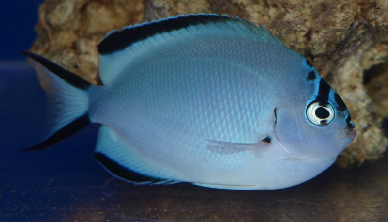 ![]() Family: Pomacanthidae (Angelfishes) Natural Range: Indo-Pacific and Western Pacific Depth: 39 to 266 ft. Size: 6 in. Jumps: No Space: 75+ gal. Reef Safe: Yes Care Level: Difficult Temperament: Peaceful Diet: Algae, zooplankton, copepods, tunicates, bristleworm larvae, sponges Natural History: The Watanabei Angelfish is found on steep slopes and dropoffs on reefs where strong current is found. It is most commonly observed in small groups at depths of 85 feet or greater. Males have more blue on the body below the dorsal fin and horizontal body stripes from the operculum to the tail. Husbandry: The Watanabei Angelfish prefers dim light and strong water flow in an aquarium, a reflection of its deep habitat on the reef. It should be housed with peaceful tankmates. Males may harass other small fish and will likely be aggressive toward other Genicanthus male angelfish. | ||||