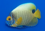 General Information: The angelishes are close relatives of the butterflyfishes, and were rather recently considered to be in the same family. Angelfishes rival the color spectrum of the butterflyfishes and possess spines in front of the operculum which their cousins do not.