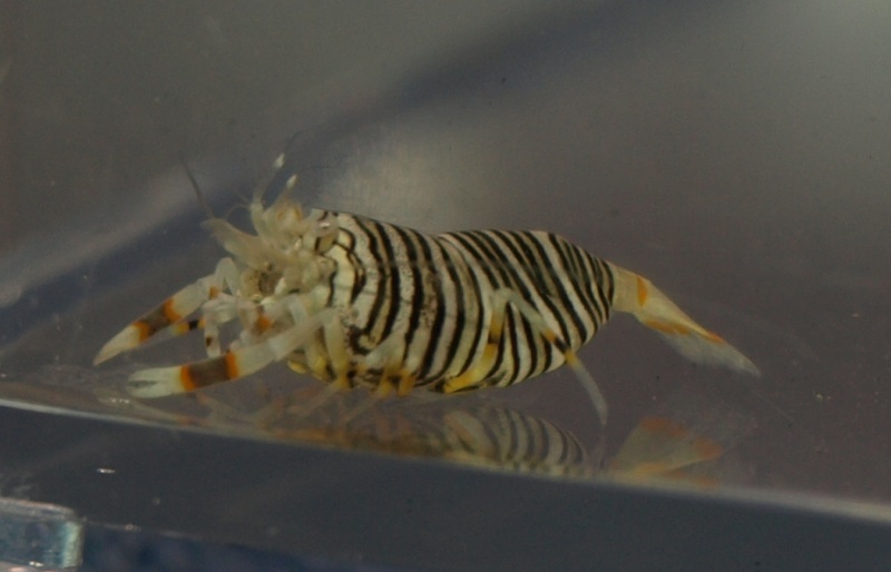 ![]() Phylum: Arthropoda, Class: Crustacea Range: Indo-Pacific Region Size: 1 in. Space:: 6+ gal. Diet: Debris, small copepods, echinoderm tube feet Reef Safe: Yes Care Level: Moderate Temperament: Peaceful Natural History: Bumble Bee Shrimp is found in lagoons, bays, and reefs. It is associated with echinoderms (starfish, sea urchins, sea cucumbers) and is reported to feed on their tube feet. It also likely feeds on debris and small copepods. Husbandry: The Bumble Bee Shrimp will feed on the tube feet of sea urchins and starfish, so they should not be kept together. | ||||